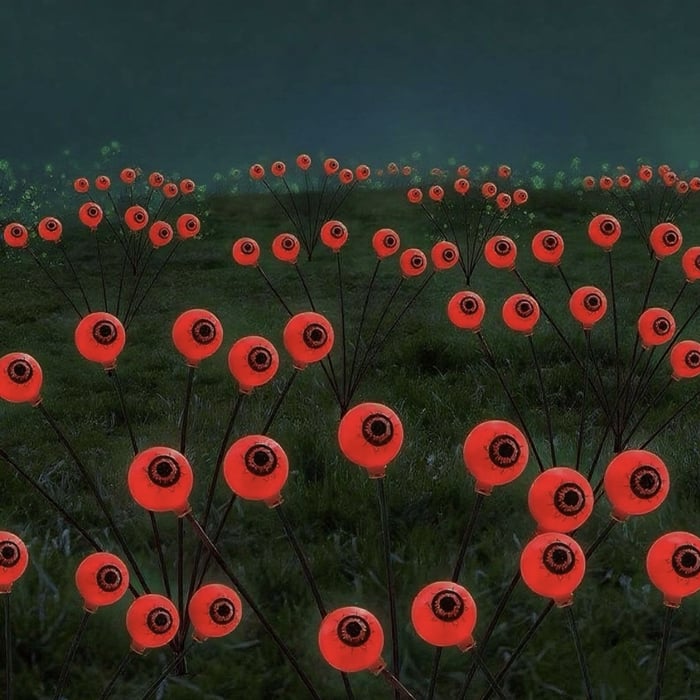 The latest design eyeball-shaped solar eyeball lights, 1 packs of 6/10 LED solar swaying eyeball lights, let you enjoy colorful lights and fun nights, specially designed to create a charming and spooky Halloween atmosphere, very Perfect for Halloween parties.