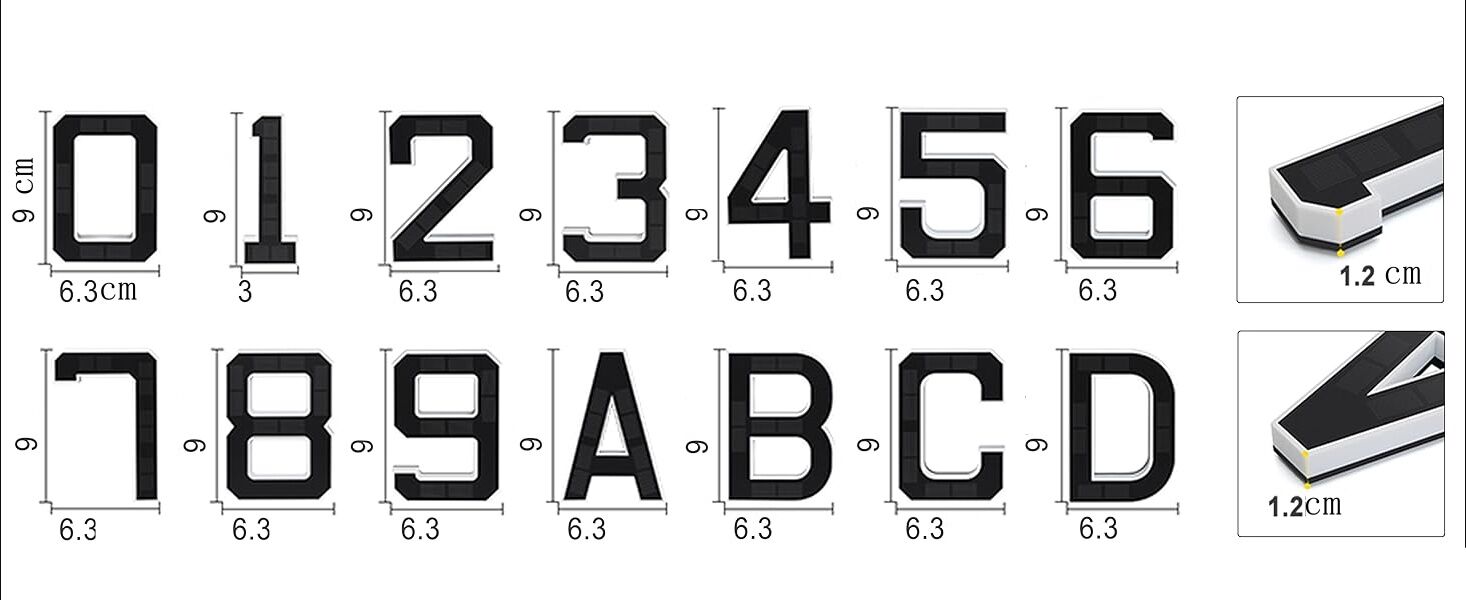 Solar Powered: Our solar house numbers are designed with solar panels on the surface, eliminating the need for additional wires or electricity, a perfect way to decorate houses outside plaques. The address sign is equipped with a 1500mAh NI-MH battery, charging for 6-8 hours under sufficient light can provide 9 hours of illumination.